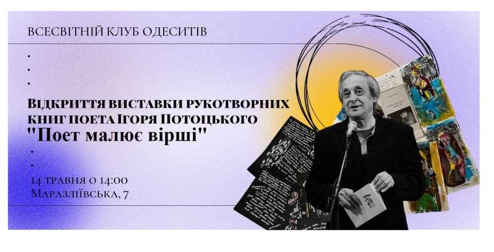 Выставка под таким названием открылась во Всемирном клубе одесситов Відкриття Виставки рукотворних книг Ігоря Потоцького "Поет малює вірші") . Экспонатами стали книжные страницы, но необычные. Книги, выходящие массовыми тиражами (то есть типографские), уживаются в творчестве автора выставки, Игоря Потоцкого, с совершенно другими, являющимися еще и предметом искусства. Здесь текст равноправен с иллюстрацией, которую может создавать как профессиональный художник (например, Григорий Палатников), так и сам поэт.