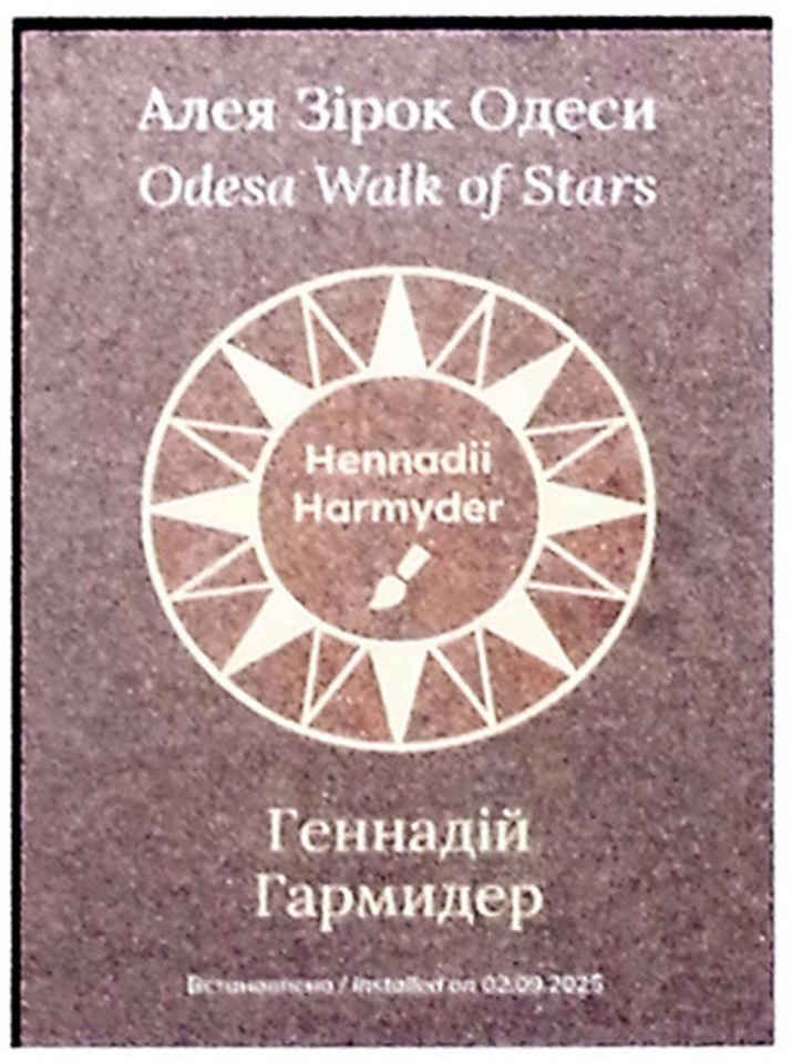 2 вересня 2025 року на Алеї зірок біля Одеського оперного театру засяяла ще одна зірка − Геннадія Гармидера – художника, графіка, книжкового ілюстратора, майстра екслібрису, члена Національної спілки художників України.
