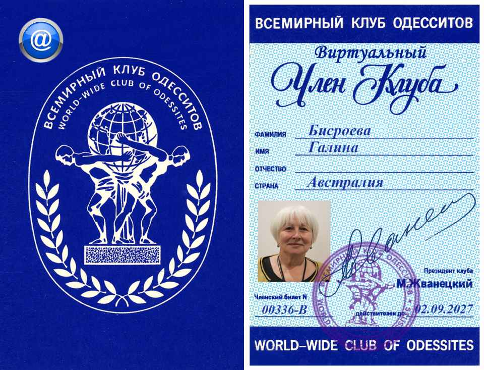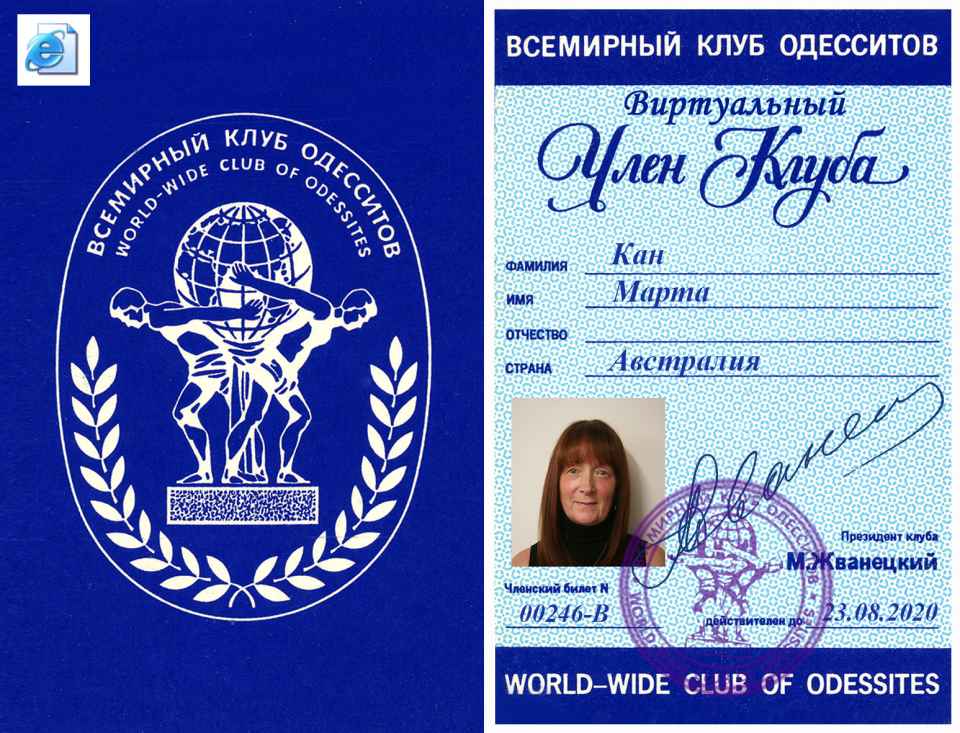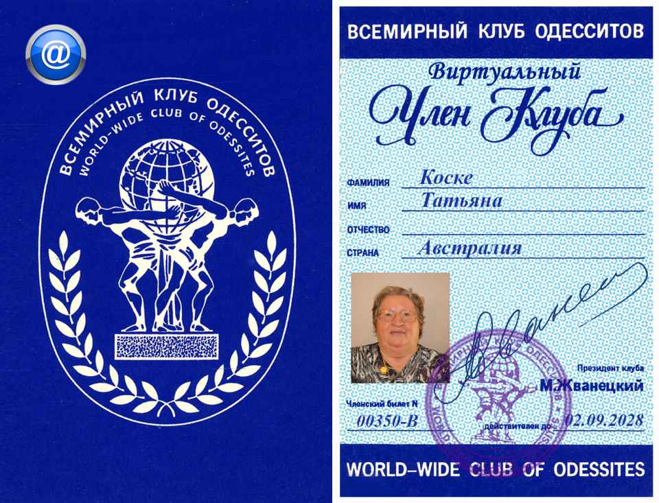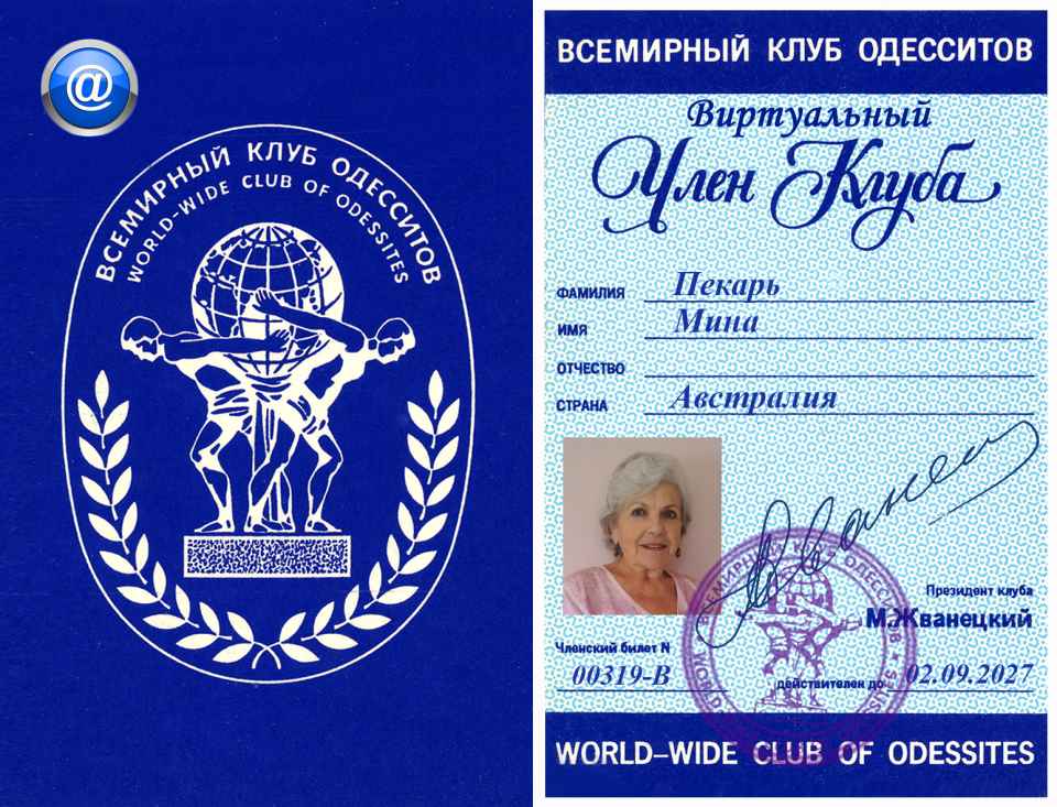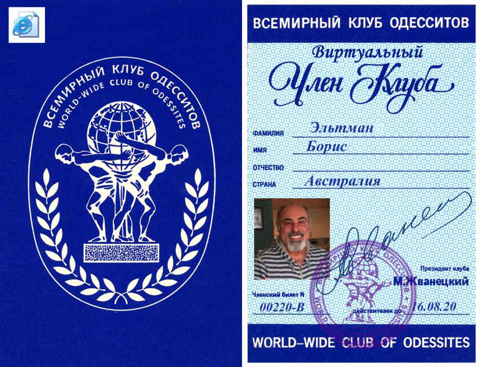 Я прошу принять меня в члены клуба одесситов Австралии (филиал всемирного клуба одесситов)