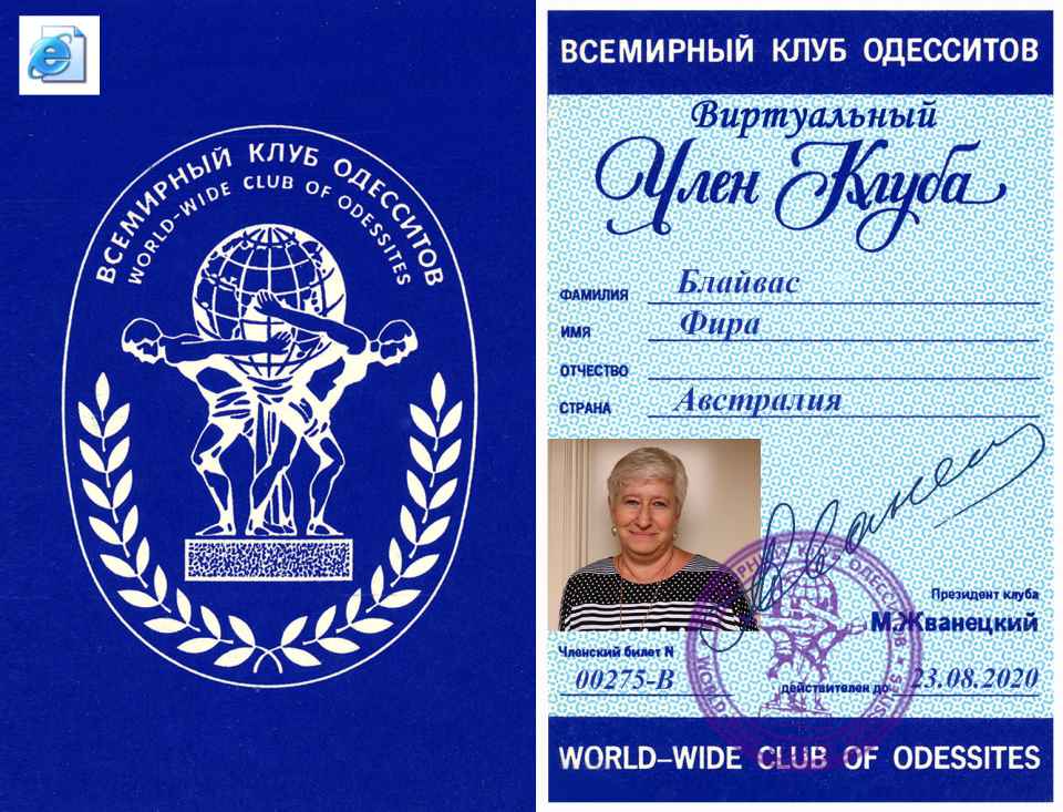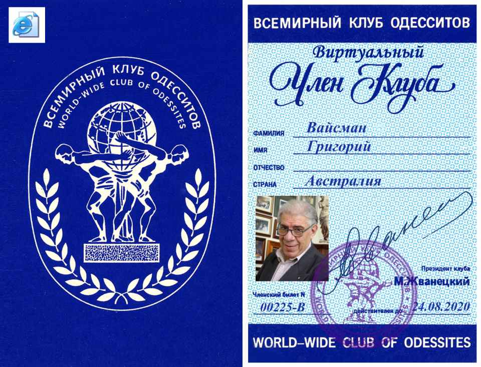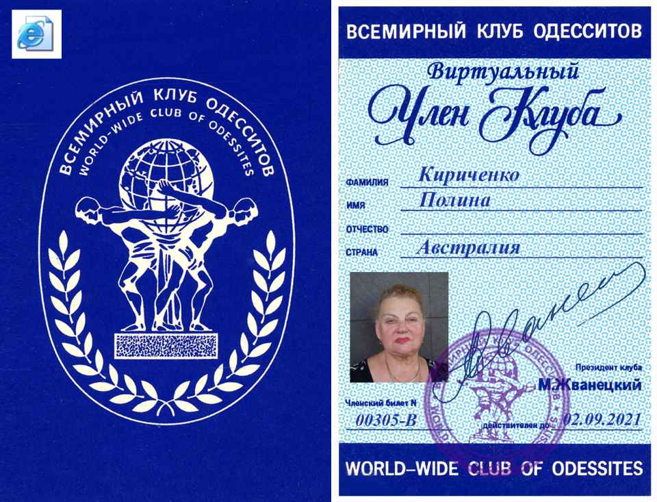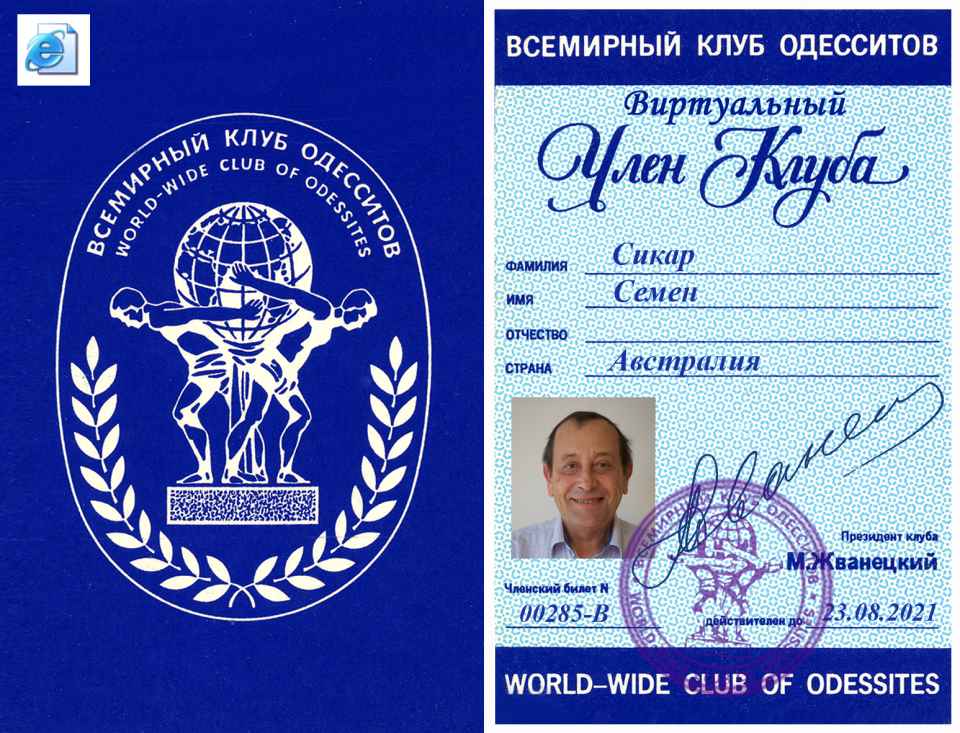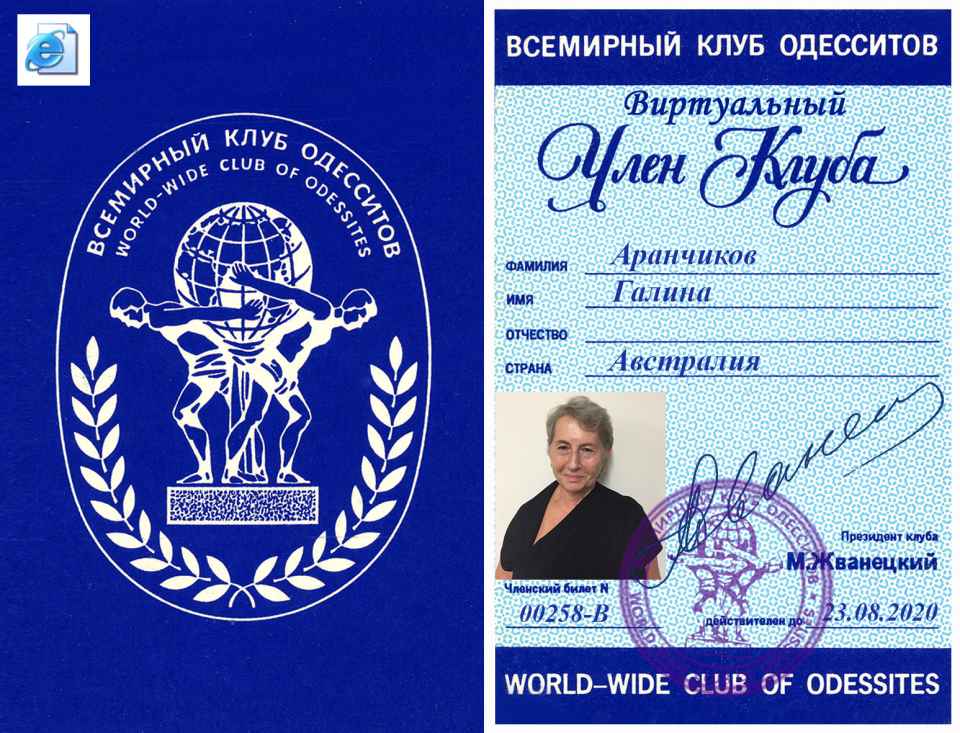 Я прошу принять меня в члены клуба одесситов Австралии (филиал всемирного клуба одесситов)