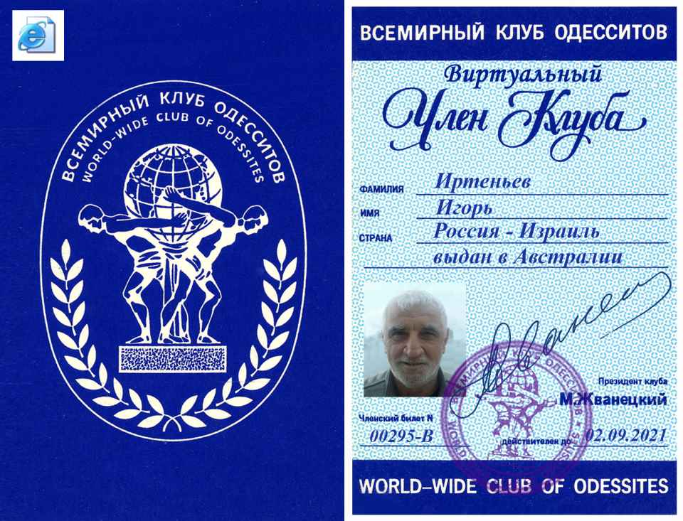 Прошу принять меня в члены Всемирного Клуба Одесситов.