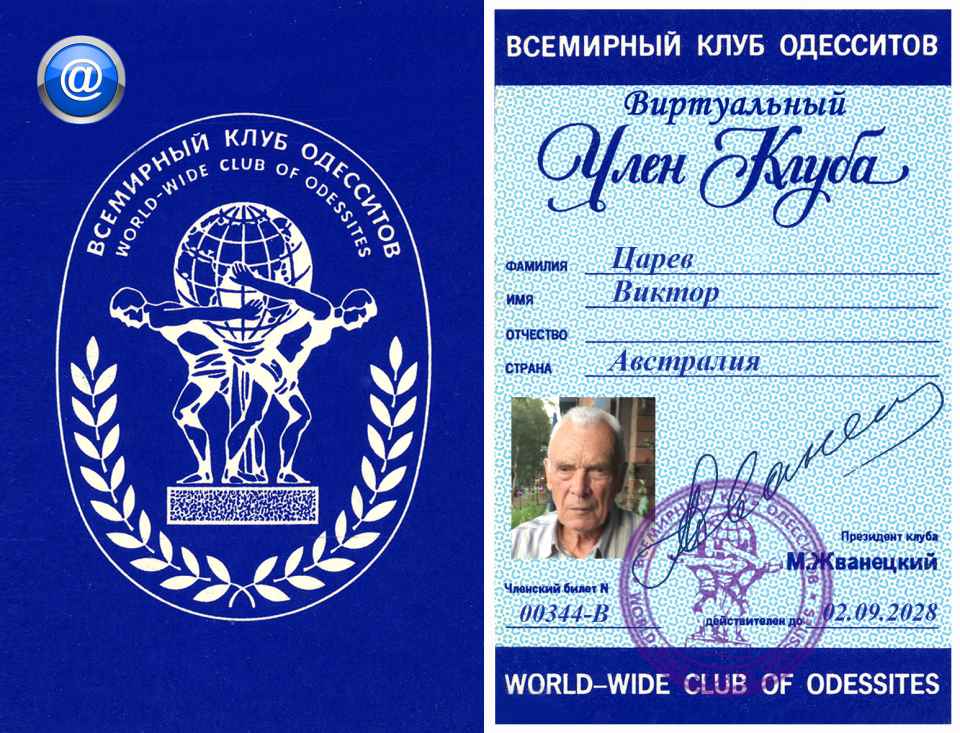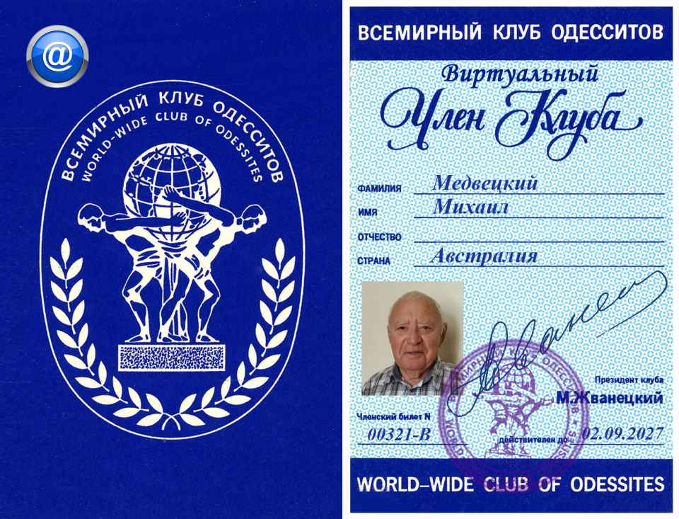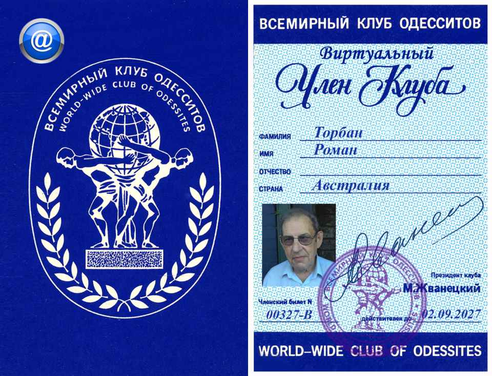 Прошу принять меня в члены Всемирного Клуба Одесситов обязуюсь до гробовой доски носить гордое имя Одессит. Давид Вулих. Австралия. Мельбурн.