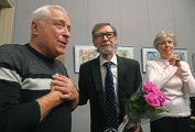 Бажаючи НАШОМУ Євгену Михайловичу довгих років, передаємо слово студійцям, чия вітальна ідея називається "Оммаж Голубовському". Хто "спіткнувся" об незнайоме слово, ось вам пояснення від Євгена Деменка, який запропонував таку назву для іменинної добірки: "У перекладі з французької "оммаж" - це вдячність, данина поваги, а в мистецтві - робота-наслідування іншому творцеві. Усе це більш ніж підходить у ставленні до іменинника.