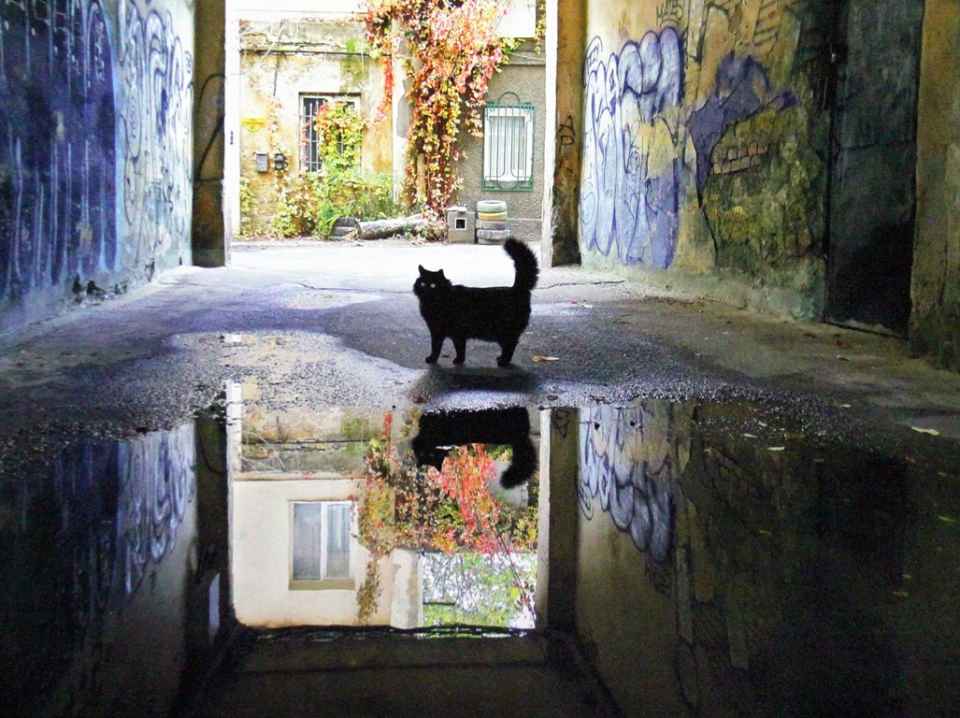 «Бачу красиву калюжу в підворітті, вирішив її зняти, — ділиться секретами майстерності автор. — Розумію, що не вистачає якогось акценту. І тут же з-за рогу виходить здоровенний чорний кіт, повільно підходить і сідає біля краю калюжі. Знімаю. Думаю: «Ех, от пройшов би він ще півтора метра, було б зовсім клас». І кіт встає і йде туди, куди мені треба. Він що, думки мої прочитав? Або ось: знімав я осінній натюрморт. І тут раптом у натюрморт приходить кіт, сідає і починає вмиватися…»