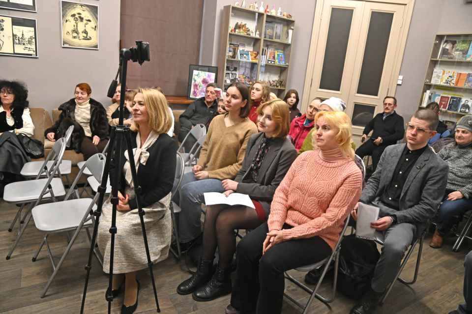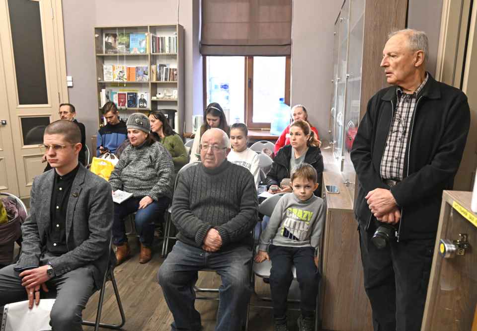 Леонід Менделійович Рукман, уособлення робочого стажу у ВКО, відвідав вечір, щоб відзначити 14 лютого як Всесвітній день дарування книг та подарувати всім молодим збірник метрів одеської літератури, зіставлений Юрієм Михайликом.