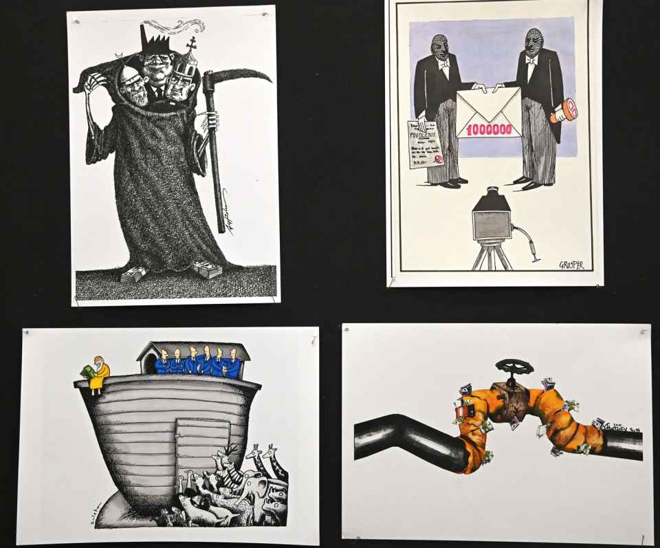 Участь у виставці взяли 37 художників-карикатуристів із 20 країн світу. Роботи на антикорупційні теми продовжують надходити як від професійних майстрів, так і від аматорів сатири та гумору, які надсилають карикатури на тему засилля корупції, хабарів і кумівства. Само собою, образи ненаситних гаманців, пухких конвертиків і роздутих від багатого вмісту шаф часто зустрічаються в таких роботах.