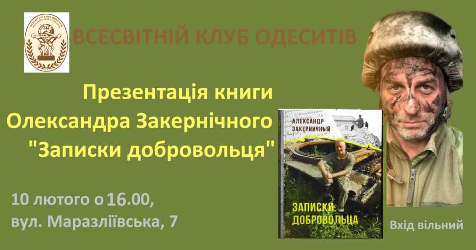 10 лютого у Всесвітньому клубі одеситів відбулася презентація книги Олександра Закерничного "Записки добровольця".