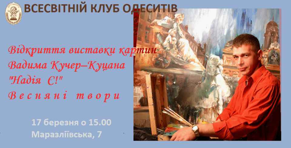 Сьогодні у Галереї Всесвітнього клубу одеситів відкрилася Виставка картин Вадима Кучер–Куцана "Надія Є! Весняні твори»