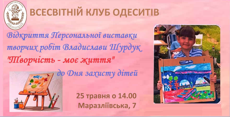 Виставка юної художниці Владислави Шурдук під такою назвою відкрилася в галереї Всесвітнього клубу одеситів (Маразліївська, 7). Утім, і інші учасники вернісажу могли вигукнути: «Творчість - моє життя!». Напередодні Міжнародного дня захисту дітей ВКО вирішив поєднати виставку дитячого малюнка з концертом маленьких виконавців.
