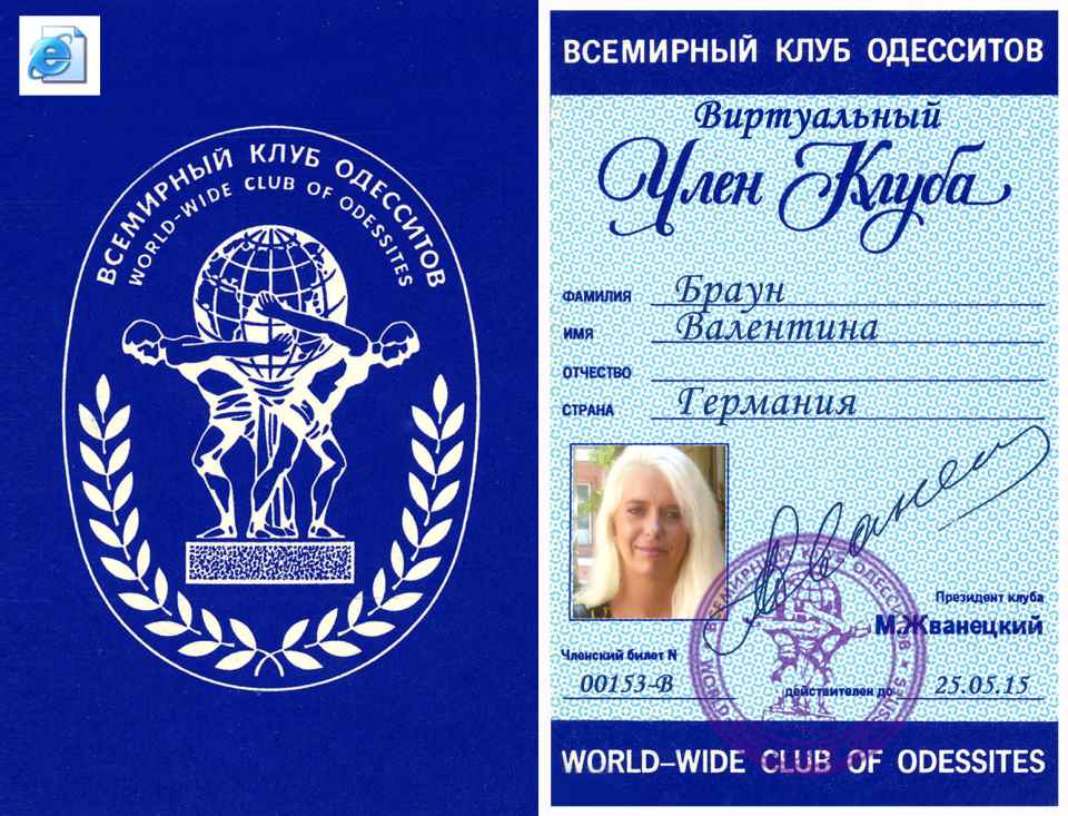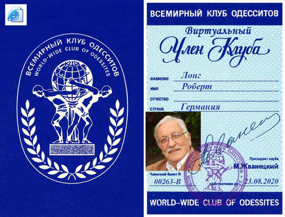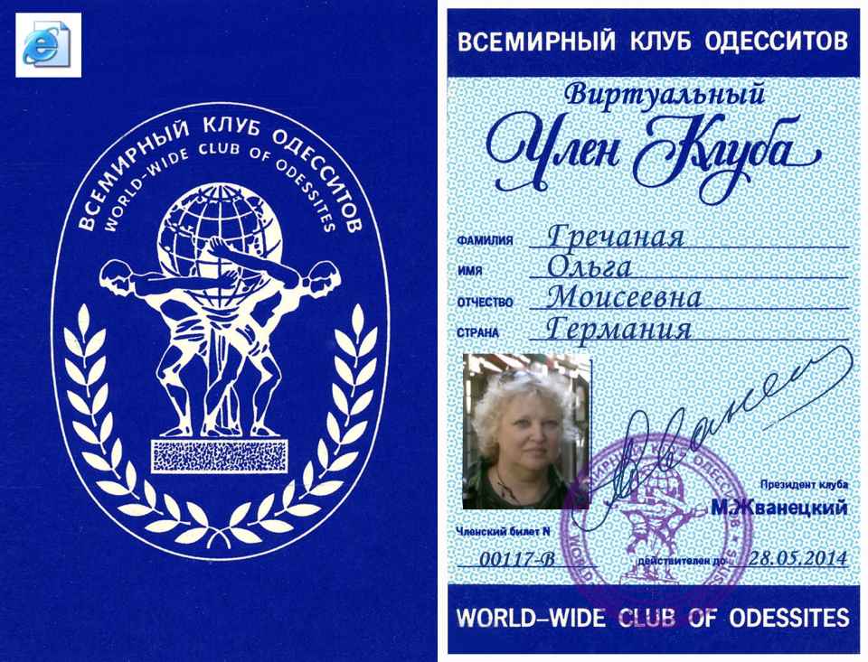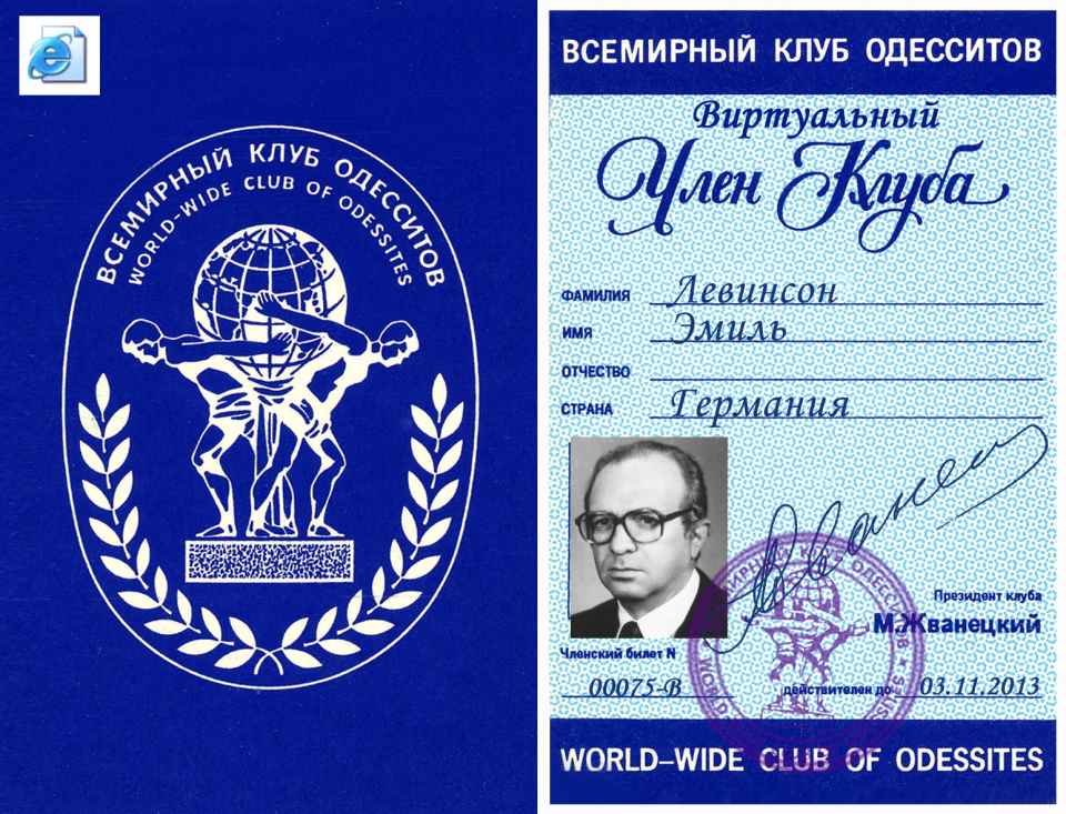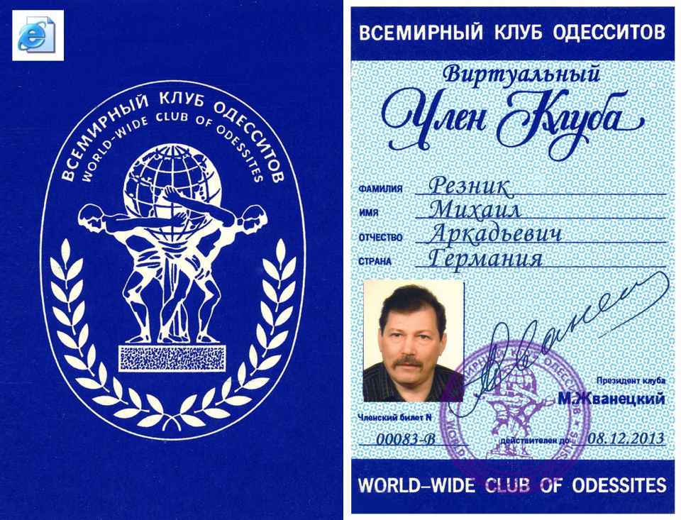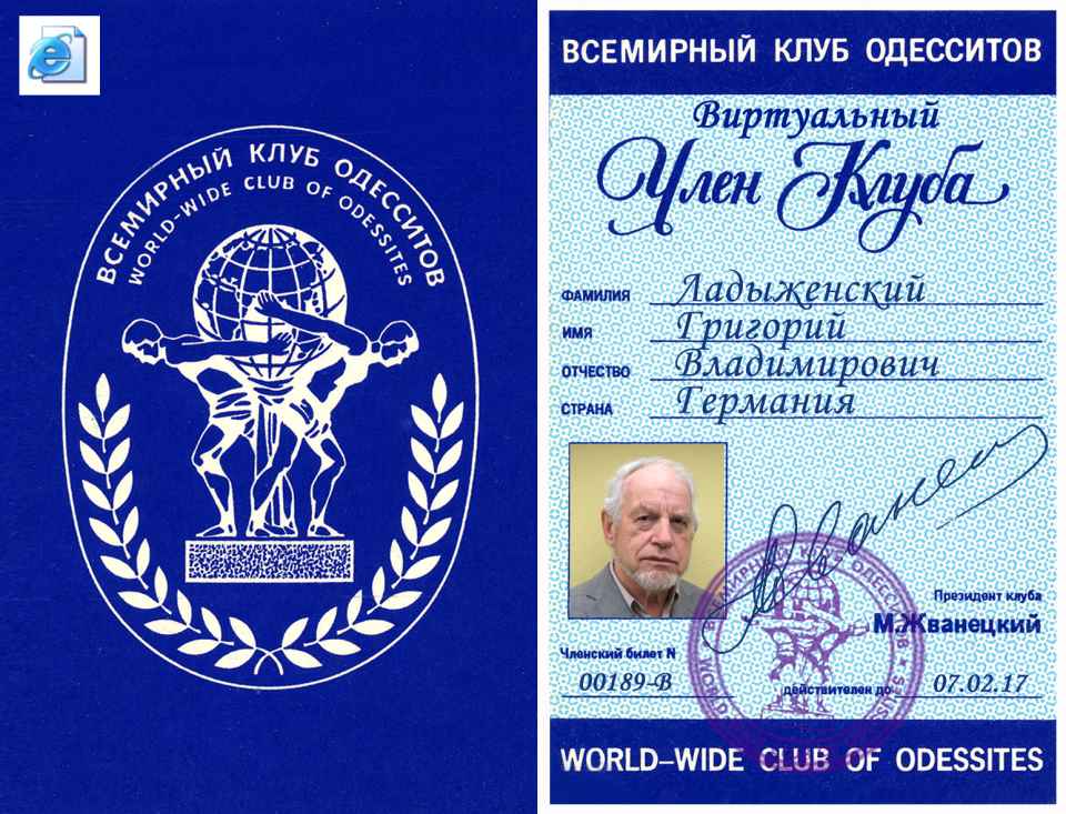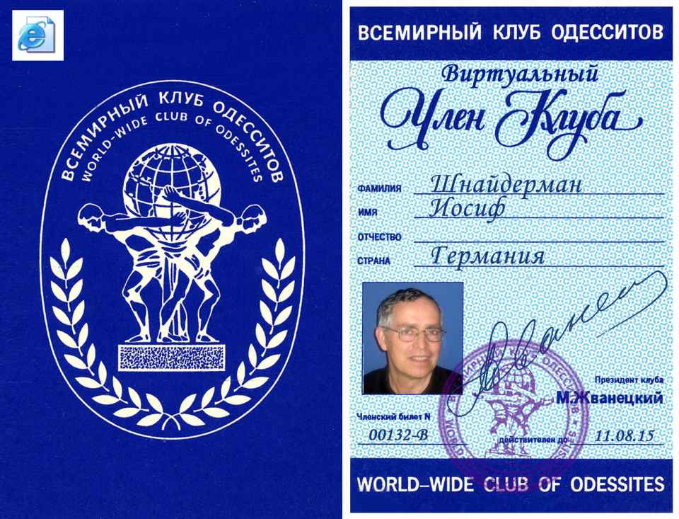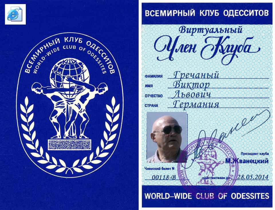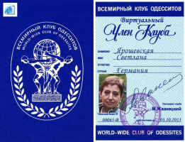 Прошу принять меня во Всемирный клуб одесситов. Являюсь одесситом по рождению, по убеждениям и «по национальности».